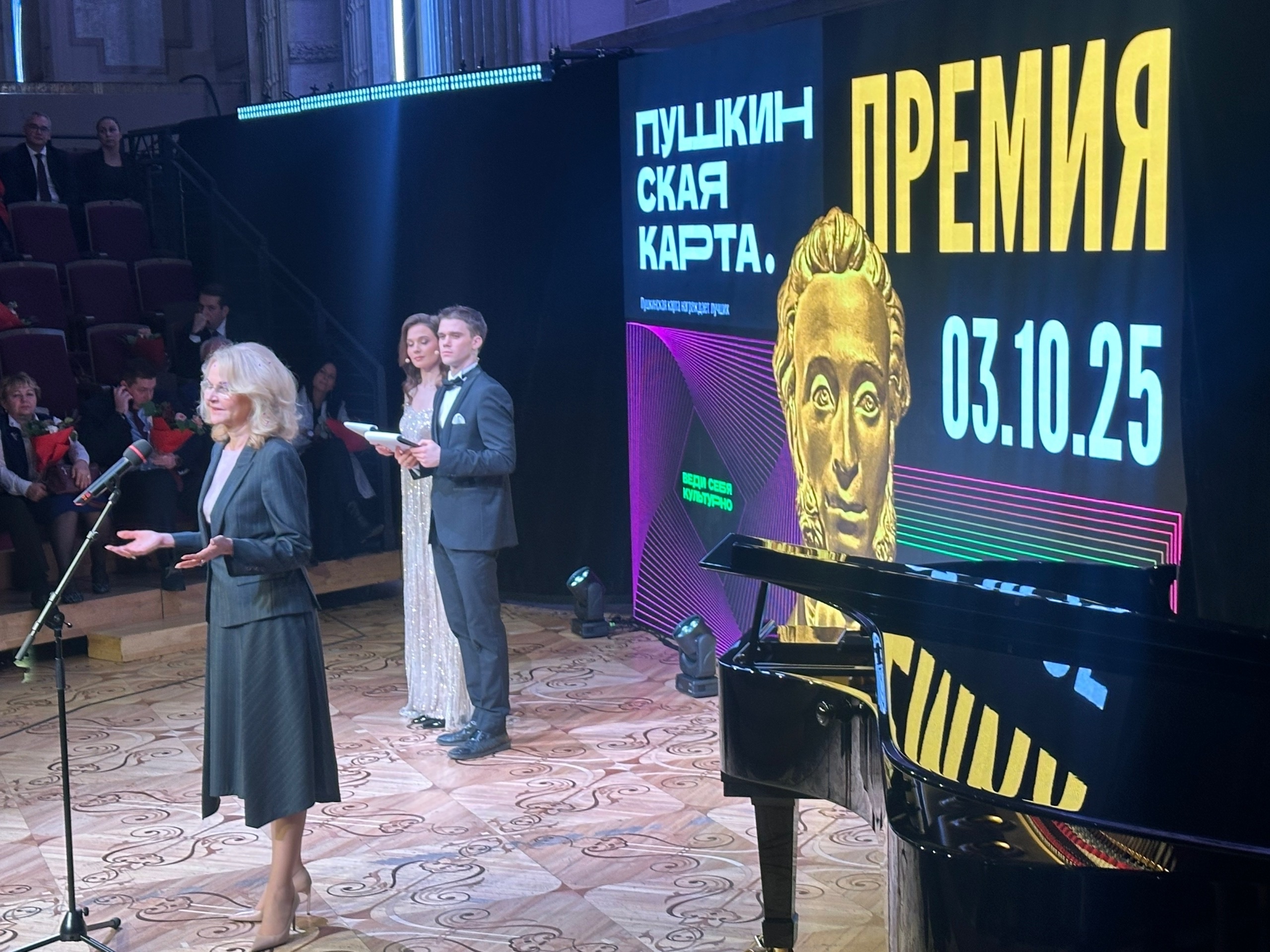 Накануне в Бетховенском зале Большого театра России состоялась церемония вручения премии Министерства культуры Российской Федерации за вклад в развитие программы социальной поддержки молодёжи от 14 до 22 лет - для повышения доступности организаций культуры «Пушкинская карта» по итогам 2024 года.