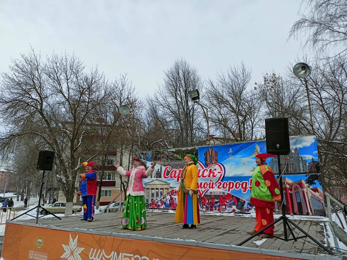 В Ленинском районе Саранска на бульваре Марины Расковой сегодня прошли народные гуляния, посвященные празднику Масленицы. С утра для жителей Юго-Запада звучали веселые песни, скоморошьи зазывалки и поздравления от творческого коллектива Дворца культуры Саранска.