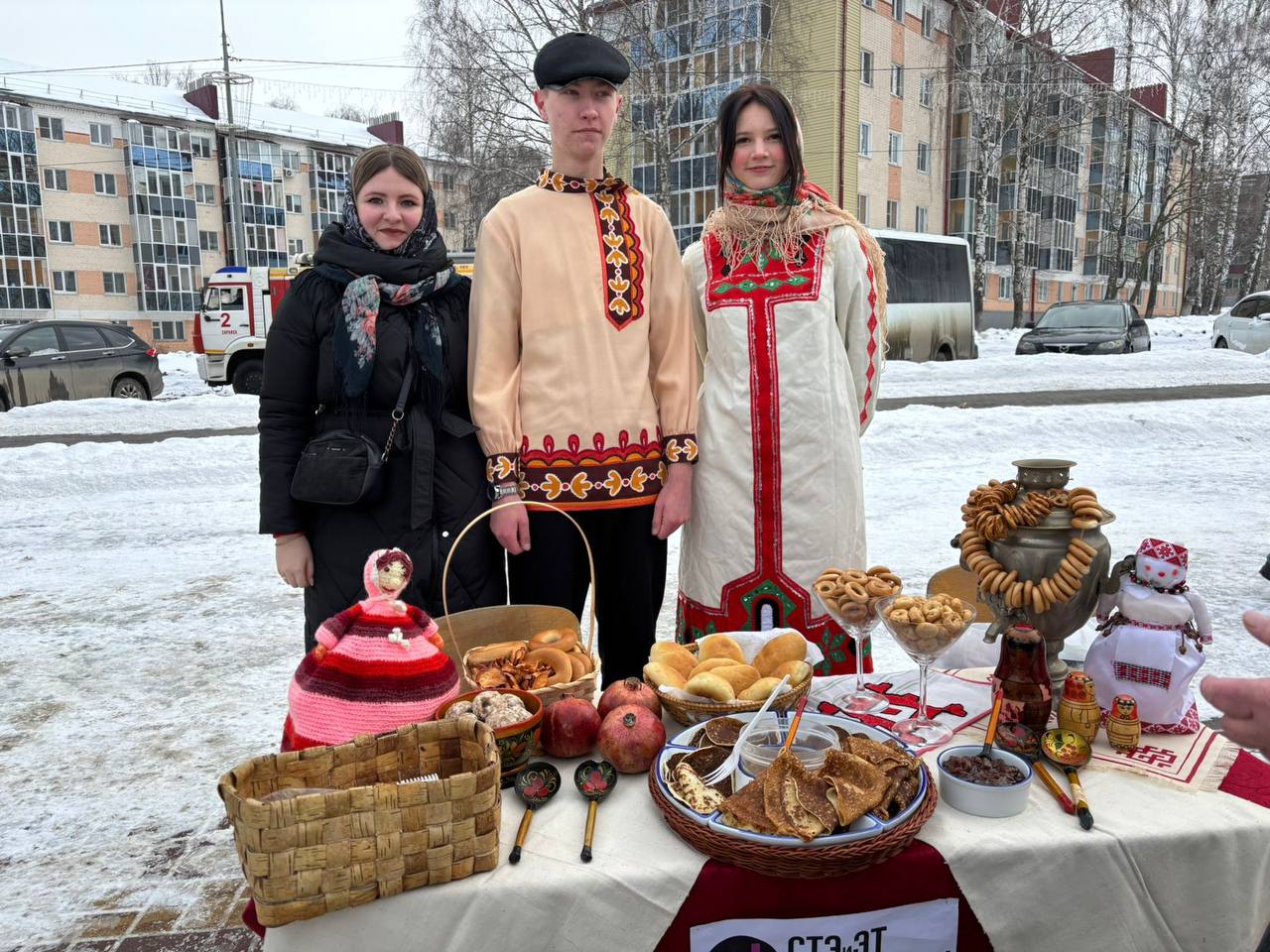 Для гостей и жителей провели конкурсно-игровую программу и конкурс на лучшее оформление масленичного стола. Также были организованы масленичные торговые ряды, где каждый желающий мог полакомиться блинами, подкрепиться кашей и ароматным чаем с полевой кухни.