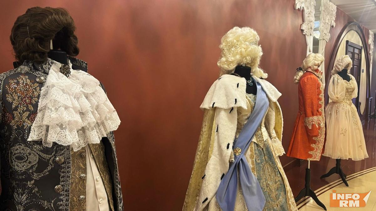 В Театре оперы и балета имени Яушева гости увидели экспозицию костюмов – платья, шляпы, и маски.