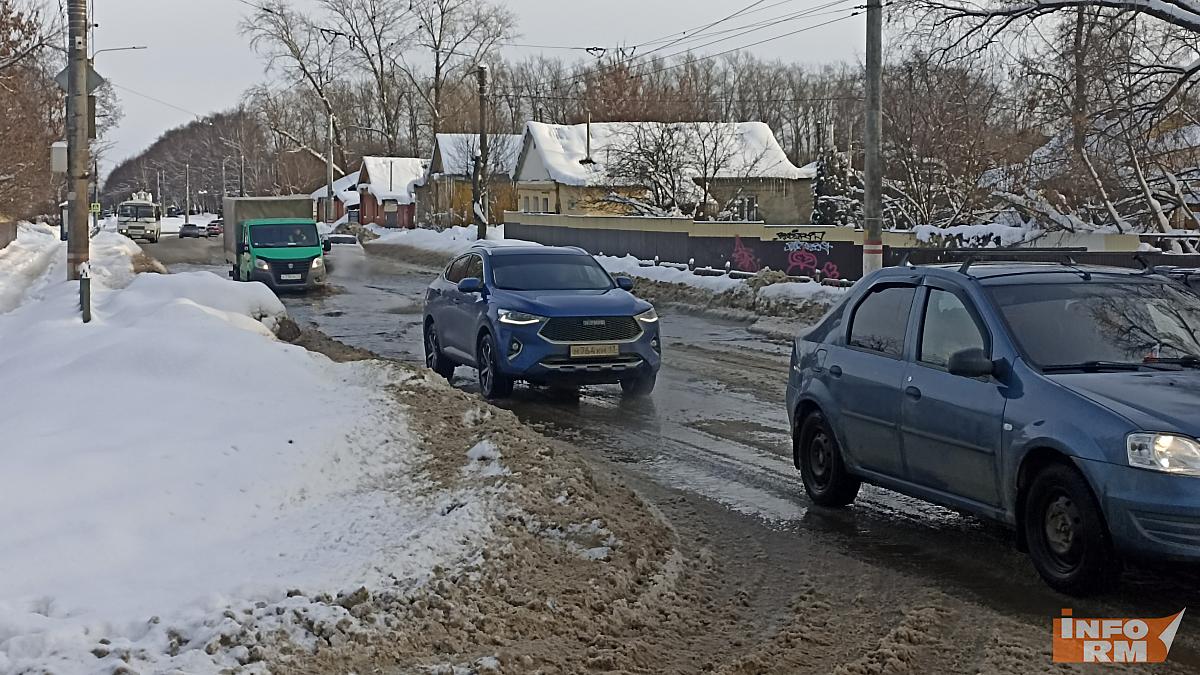 В столице Мордовии улицу А. Невского в четверг затопило водой. Вода стекала по проезжей части, образуя большие волны. Между ними пытались лавировать автомобили. Ситуацию осложняло то, что под водой находился гололёд.
