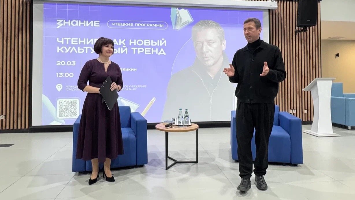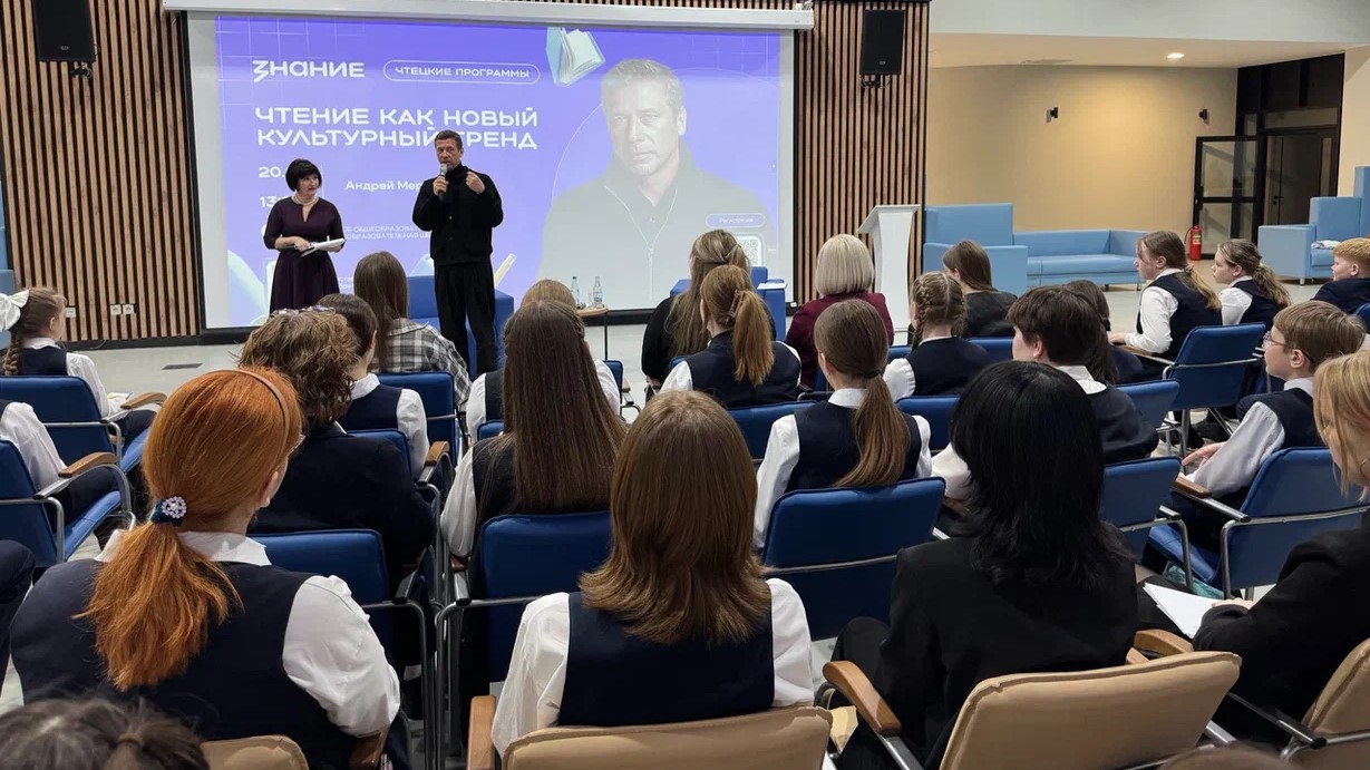 Встреча была посвящена роли чтения в жизни человека, развитию личности и поиску истинных ценностей через книги. Андрей Мерзликин рассказал, какие книги сопровождали его в жизни, как они помогали и вдохновляли, а также поделился с ребятами секретами выразительного чтения.
