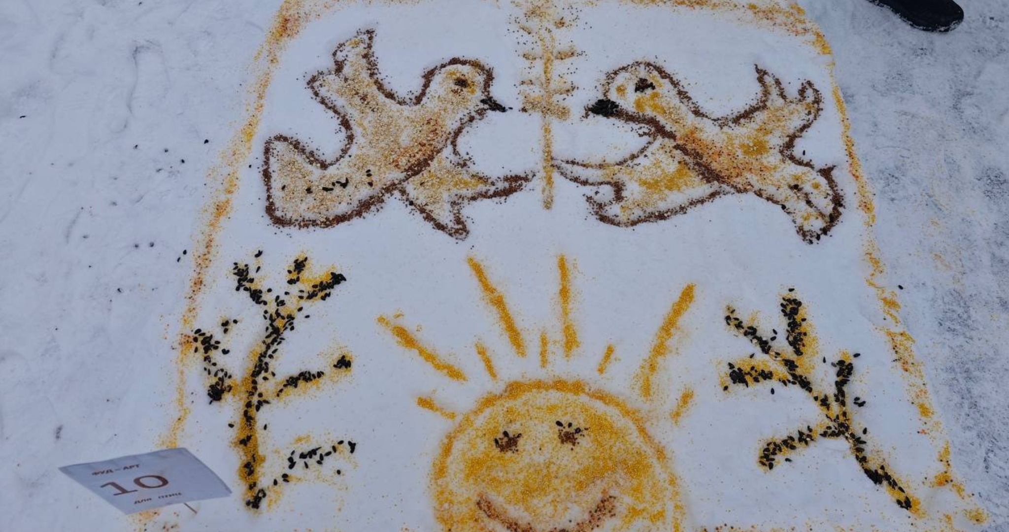 «Картины, выполняются прямо на снегу. В качестве изобразительных материалов используются крупы, семечки, орехи, ягоды, овощи, зелень. Дополнительно можно взять веточки, опилки, шишки, сухую траву и другой природный материал», - сообщает «Заповедная Мордовия».