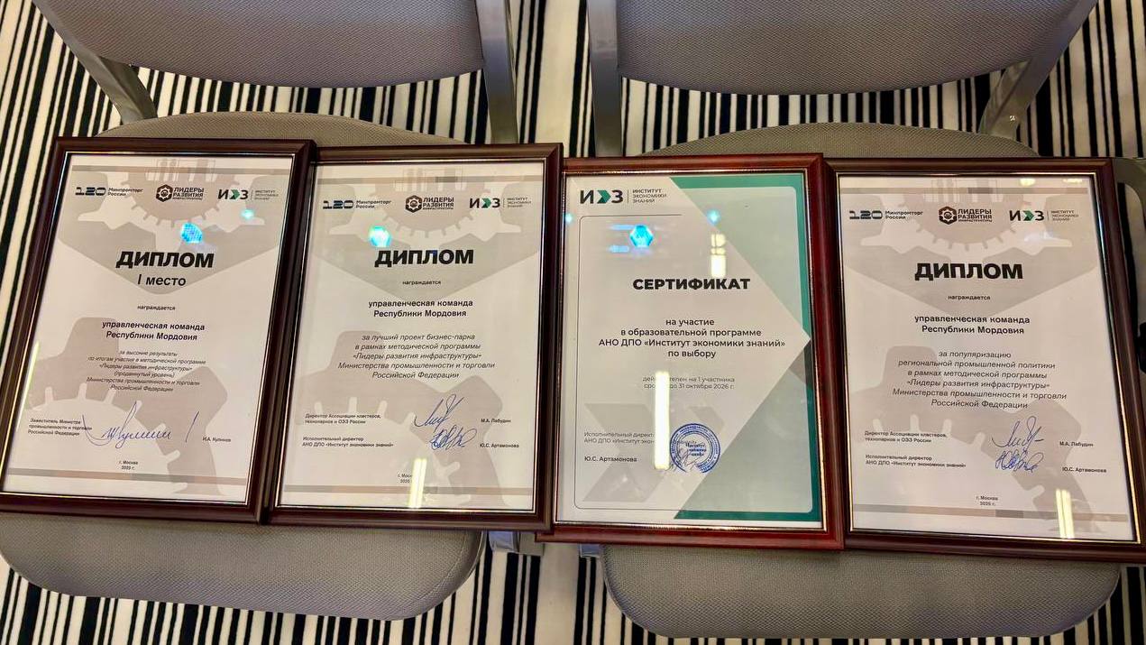 Команда Мордовии представила два проекта – развитие промышленного парка и создание нового бизнес-парка. И по итогам финала конкурса республика получила три диплома: за лучший проект бизнес-парка, популяризацию региональной промышленной политики и диплом I степени за высокие результаты по итогам участия в программе.