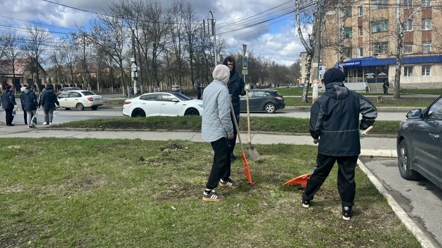 Совместными усилиями были очищены тротуары и газоны, приведены в порядок общественные пространства.