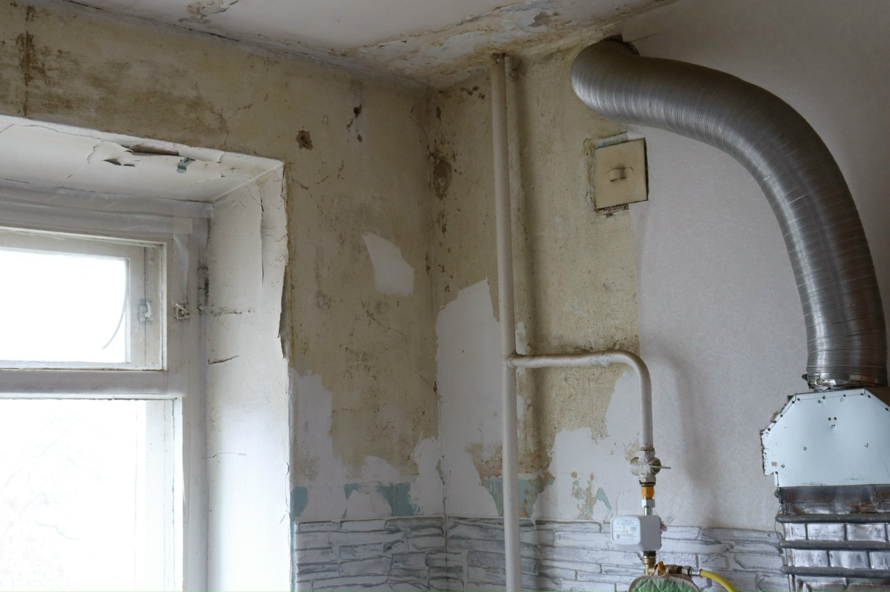 Жильцы дома не растерялись во время встречи с высокопоставленным чиновником и показали последствия протечек: отклеивающиеся обои, воду, текущую по электропроводке, плесень в подъездах.