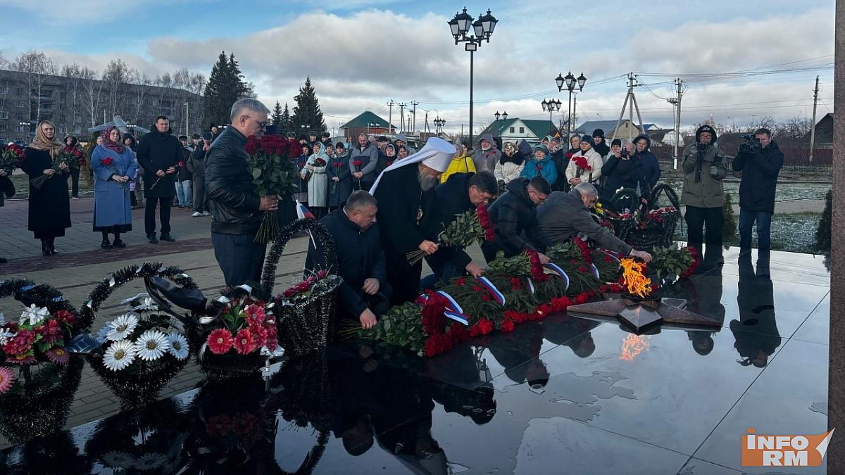 После торжественной церемонии освящения состоялась лития у стелы памяти погибшим участникам СВО. Собравшие возложили к памятнику цветы и почтили память бойцов минутой молчания.