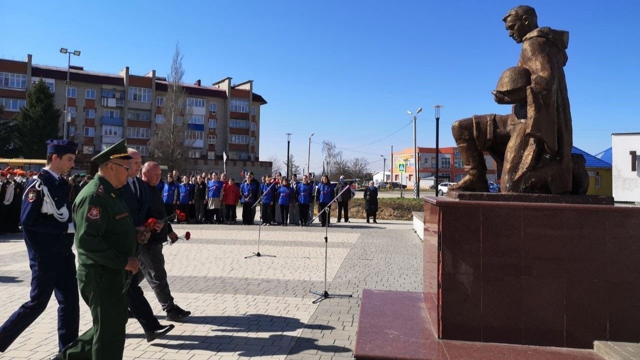 Память павших воинов почтили минутой молчания. В знак глубокого уважения и скорби к памятнику возложили цветы.