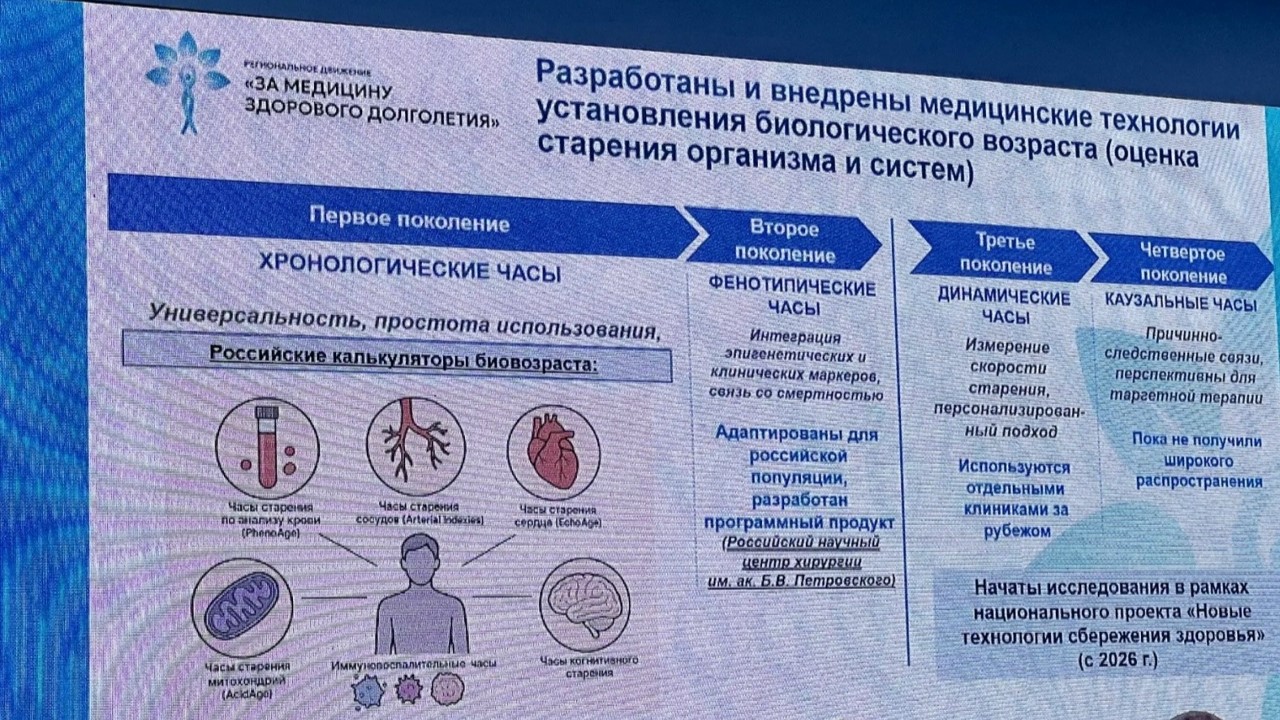 «Долголетие, причём здоровое и активное – приоритет государственной политики», – отметила аудитор Счётной палаты России Светлана Орлова. Осенью прошлого года заместитель председателя Правительства России Татьяна Голикова дала старт региональному движению «За медицину здорового долголетия». А с 2026 года медицина долголетия вошла в программу госгарантий.