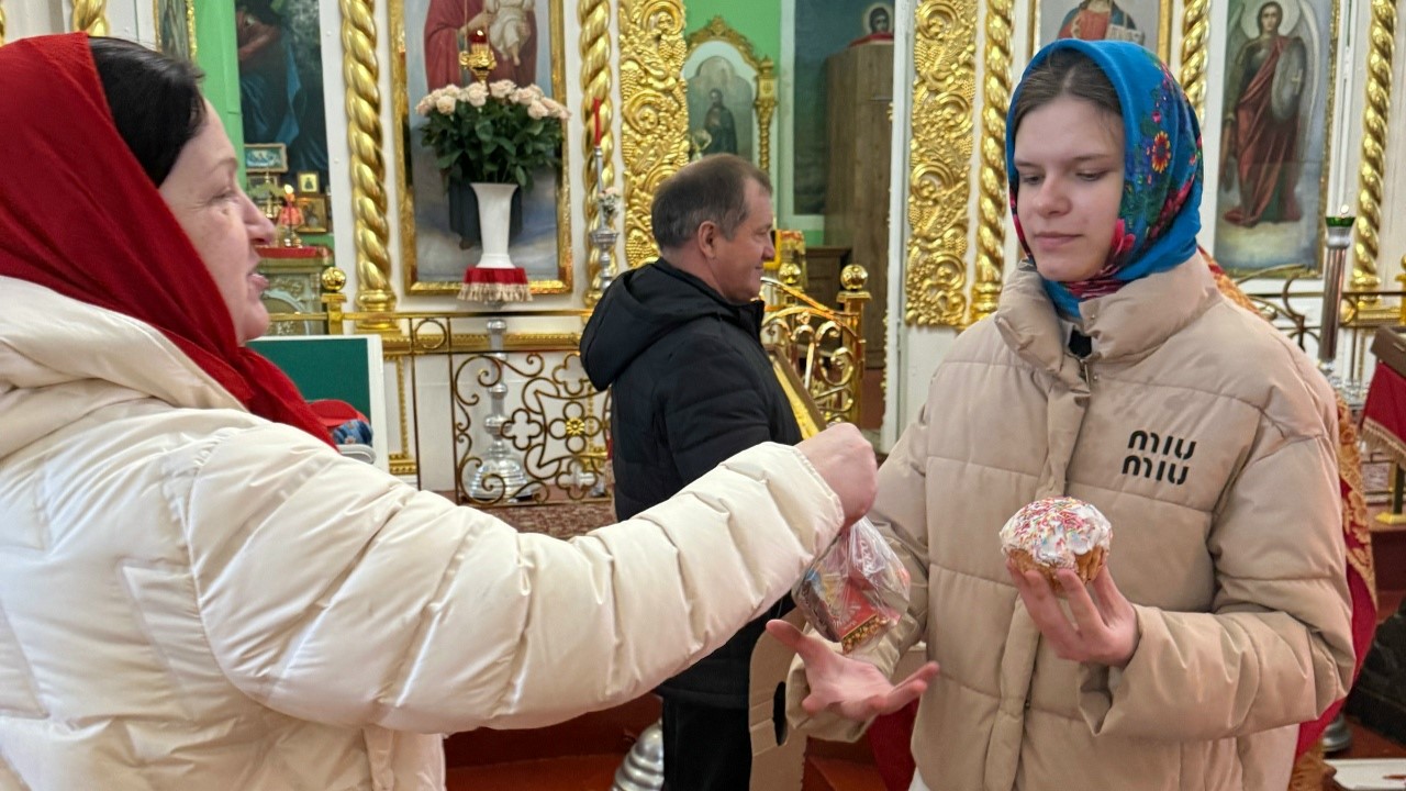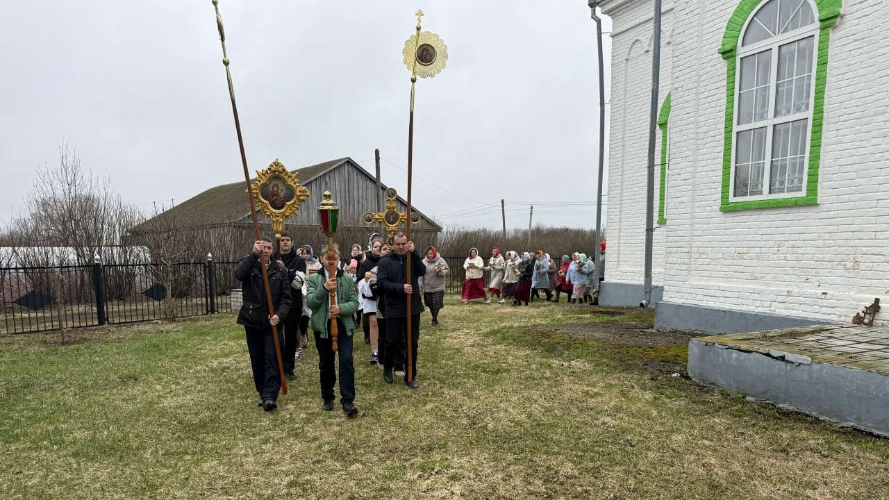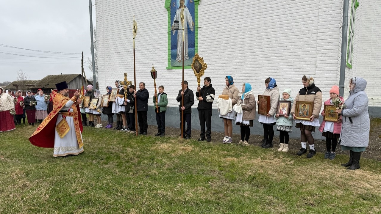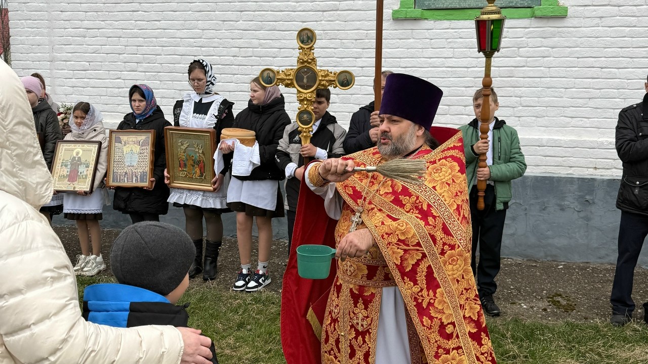 Дети под пение канона Пасхи прошли вокруг храма вместе с настоятелем, неся в своих руках запрестольные иконы, Артосы и святые образа. После целования Креста батюшкой и матушкой ребятам вручили куличи и пасхальные сладости.