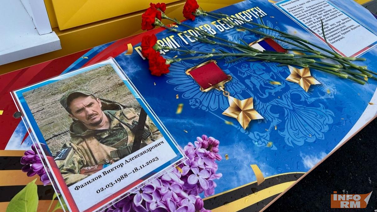 Памятную доску установили и Виктору Фазилову. Он тоже ученик Рождественской школы, где сейчас учится его сын. С началом спецоперации Виктор Фазилов был призван в ряды Российской армии. Погиб при исполнении воинского долга 18 ноября 2023 года.