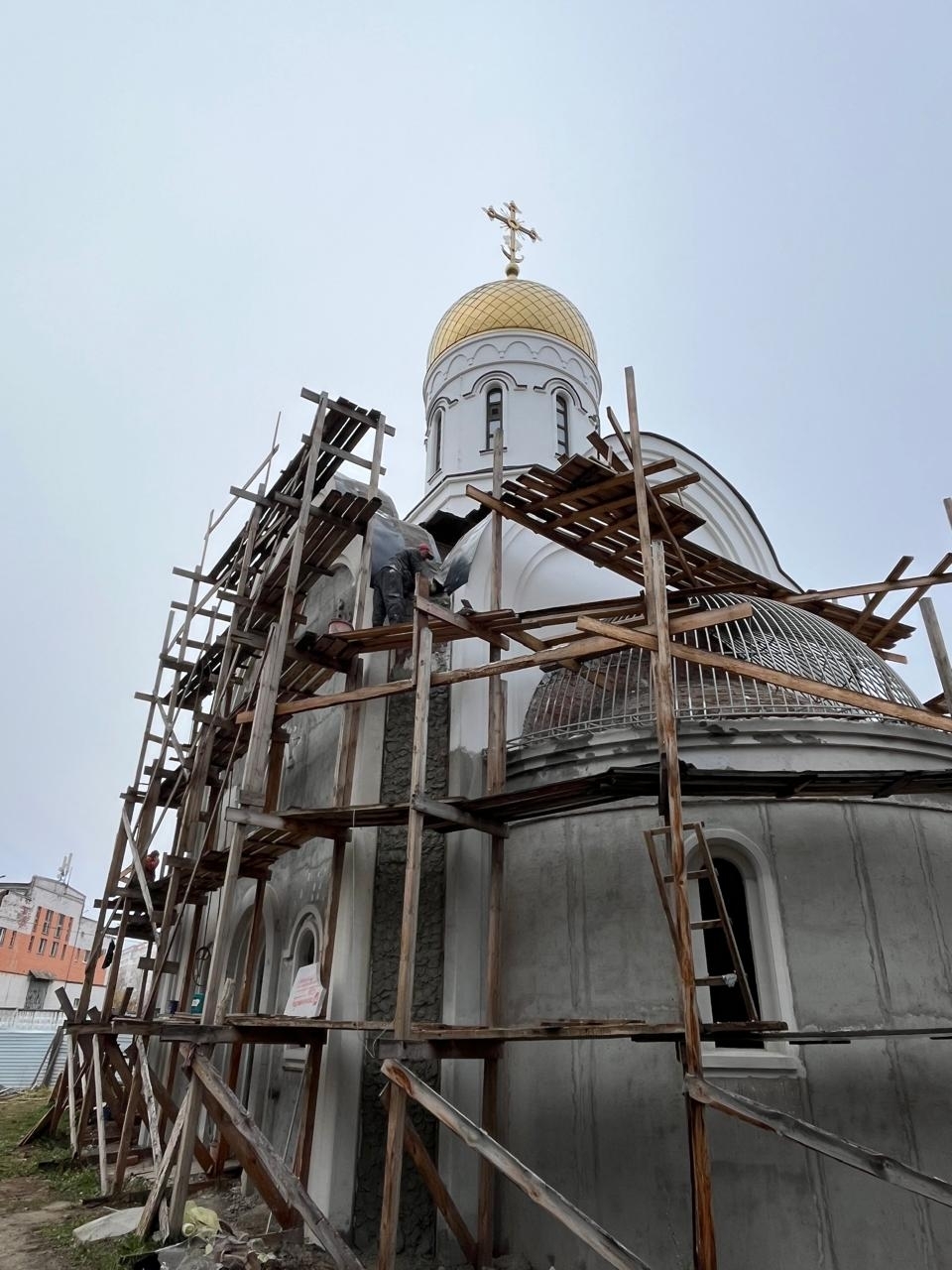 По информации Саранской епархии, штукатурка стен и свода, под которым размещено техническое помещение с установленной системой вентиляции, активно ведётся как внутри, так и снаружи. Кроме того, завершается установка закладных крестов и подготовка стен к декоративному оформлению. В скором времени углы храма украсит орнамент, состоящий из треугольных элементов.