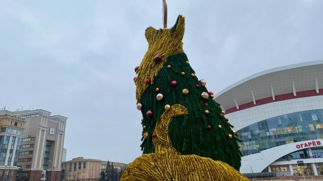 В столице Мордовии на площади Тысячелетия смонтировали новогодний креатив. Впервые в Саранске появилась ёлка-лиса, и такой выбор сделан не случайно. Ведь именно лисица красуется на гербе города и является его историческим символом.