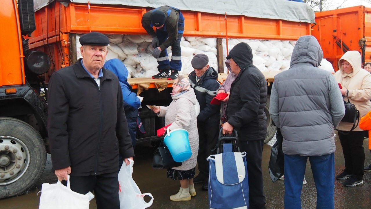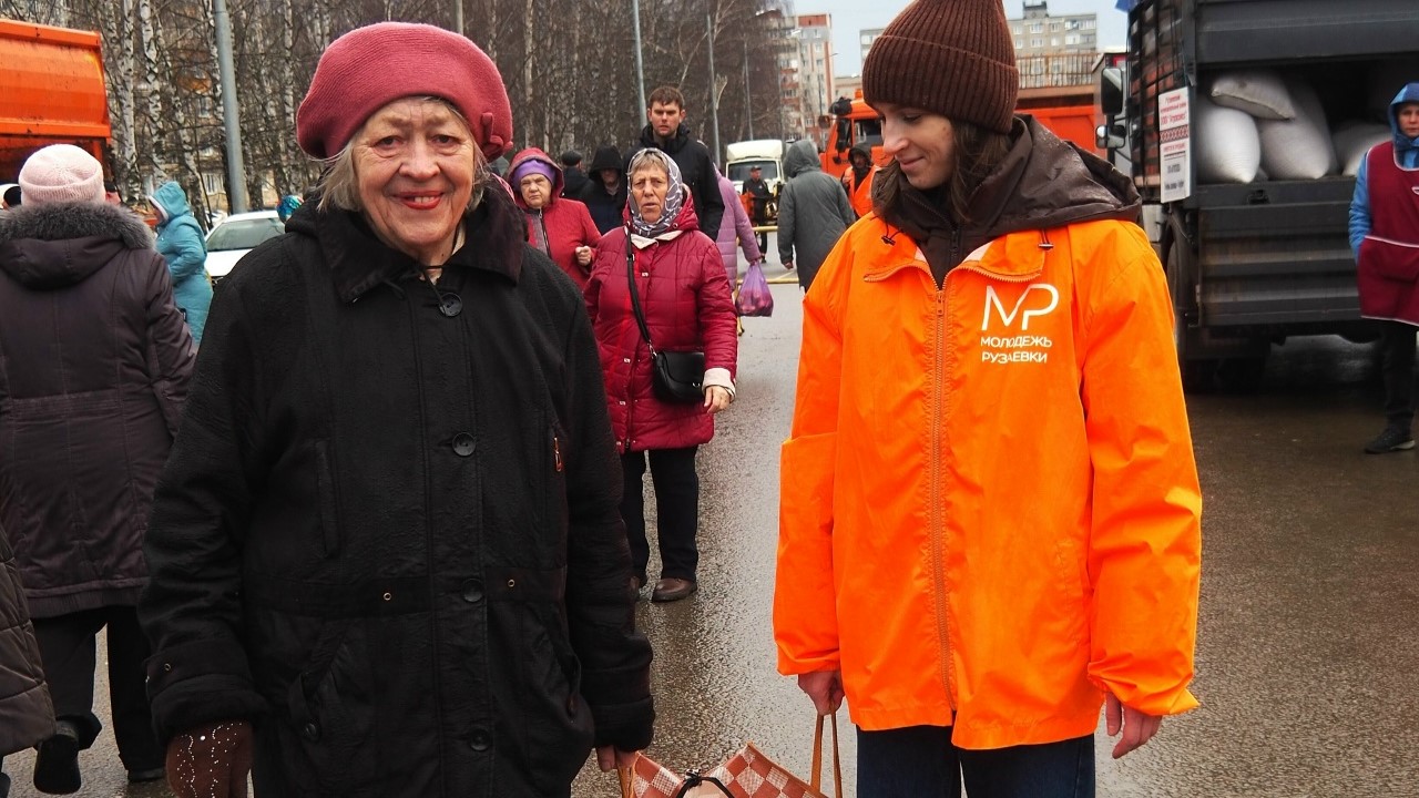 Тяжёлые сумки помогали донести волонтёры. За порядком следили полицейские и народные дружинники.