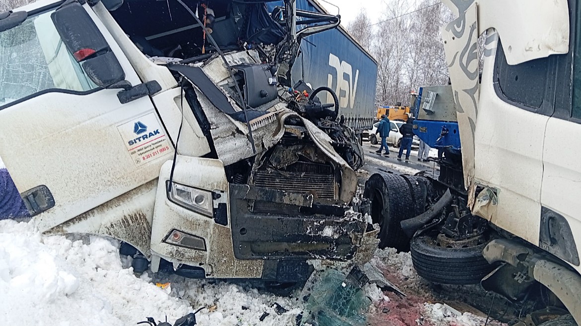 В 11:00 67-летний водитель автомашины «Скания P 360 LA4*2HNA» с полуприцепом «ЧМЗАП» вылетел на встречную полосу и столкнулся с автомашиной «Ситрак C7H» под управлением 54-летнего водителя.