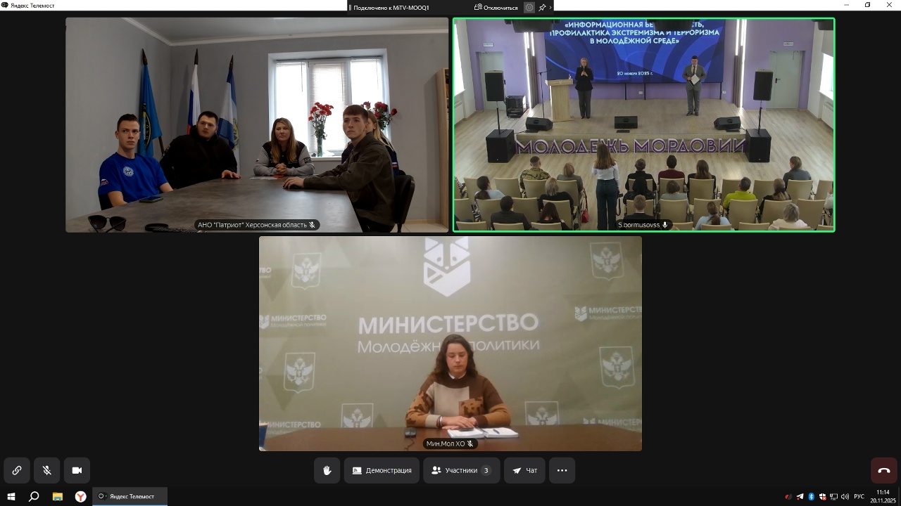 Представители Министерства молодёжной политики Херсонской области и сотрудники Молодёжного центра «Патриот» дистанционно участвовали в семинаре по противодействию экстремизму и терроризму среди молодёжи. Как сообщает «Шефская помощь | Херсон», мероприятие было организовано на площадке Мордовского республиканского молодёжного центра в режиме видеоконференции.