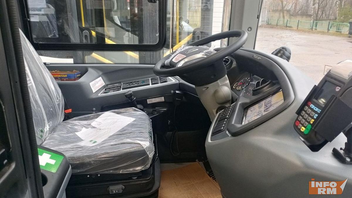 В салоне есть места для инвалидов, родителей с детьми и даже для собаки-поводыря. За безопасностью следят шесть камер. Если водителю станет плохо или он просто отвлечётся, то сработает датчик безопасности и сигнал тут же передастся диспетчеру.