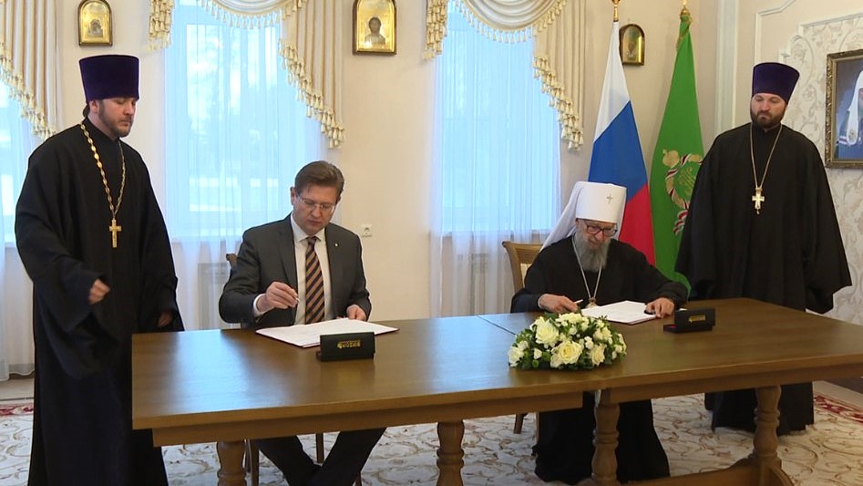В Саранске подписано соглашение о сотрудничестве между епархией и Управлением Минюста России по Республике Мордовия. Как сообщает Саранская епархия Русской Православной Церкви, документ скрепили подписями митрополит Саранский и Мордовский Зиновий и начальник управления Виталий Чернов.