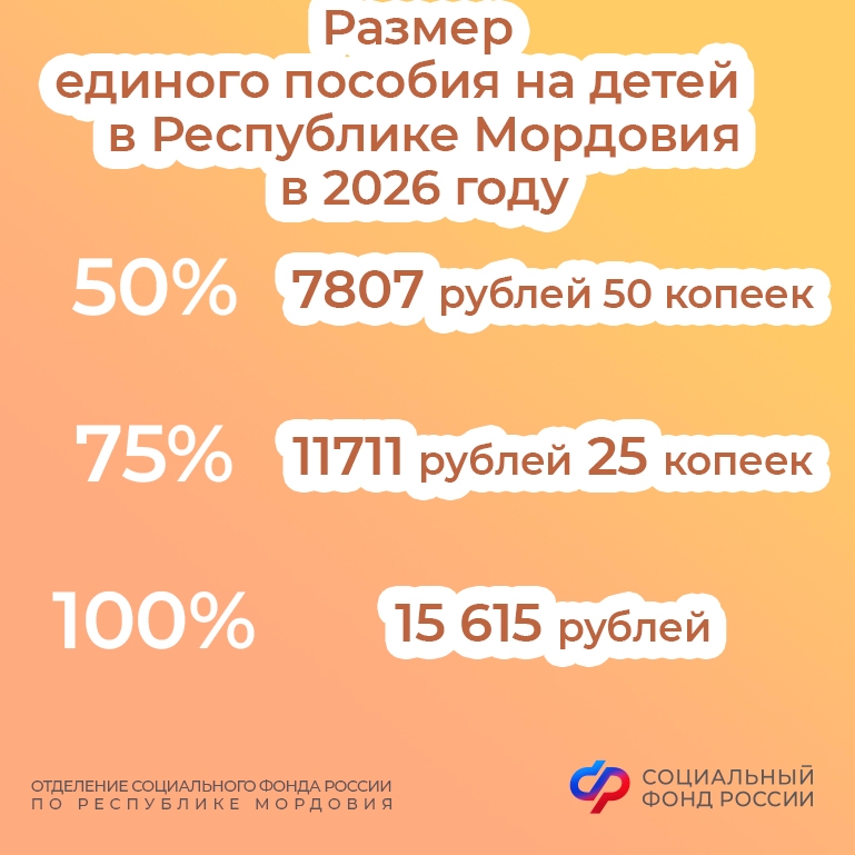 С 1 января 2026 года в Мордовии увеличились пособия на детей и беременным женщинам. Эти выплаты, как сообщает республиканское отделение Социального фонда, могут составлять 50, 75 или 100% размера регионального прожиточного минимума.